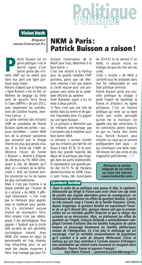 Un article de Vivien Hoch dans les 4 Vérités de Juin 2013.